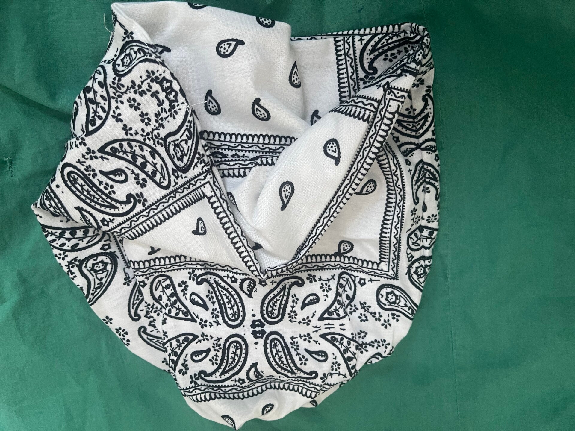 Female black and white hair wrap.